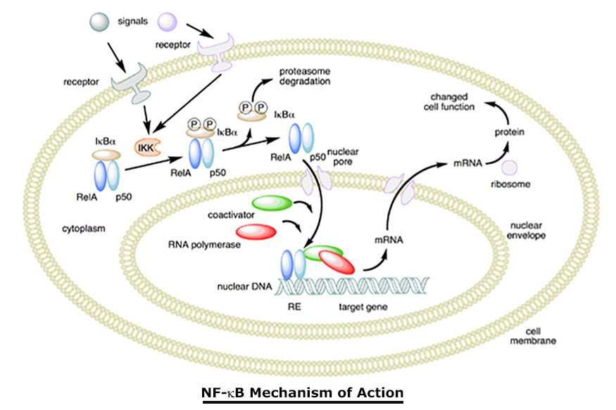 Nitric oxide is also generated by phagocytes (monocytes, macrophages, and neutrophils) and, as such, is part of the human immune response. Nitric oxide has been demonstrated to activate NF-?B in peripheral blood mononuclear cells, an important protein complex that controls the transcription of DNA and a transcription factor in iNOS gene expression in response to inflammation.