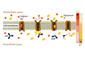 The Na+/ K+ pump within the membrane forces a ratio of 3Na+ ions out of the cell for every 2K+ ions pumped in for proper metabolism. The sodium-potassium pump uses energy derived from ATP to exchange sodium for potassium ions across the membrane. An impaired Na+/ K+ pump results in edema (cellular water accumulation) and a tendency toward fermentation,